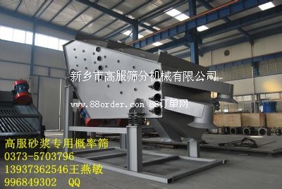 砂漿概率篩較適合烘干后砂石的篩分,如果含水率高于5%的話,篩分效率就會下降。高服概率篩的性能特點有:1、產量大,效率高,篩分的砂漿產品質量好,規格品種全,用途廣,能適應各行業對砂漿的需求;2、振動力平穩,占地面積小,獨特的篩網結構,篩分不堵網,換網簡便;3、篩體兩側設計觀察窗,方便查看內部篩網等易損件的磨損情況,及時更換損壞的篩網;4、整機全封閉式設計,上蓋設計除塵口可與除塵系統連接,作業無粉塵達到國家環保要求。砂漿概率篩專業咨詢高服王燕敏0373-5703796,13937362546,qq:996849302