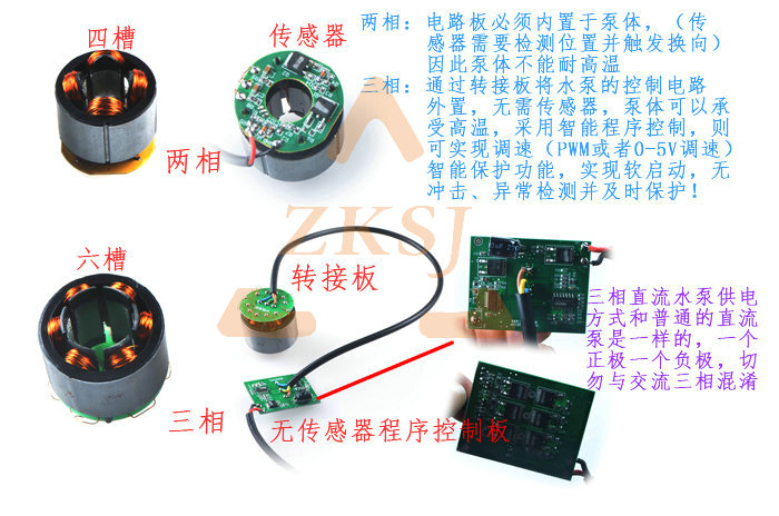 | 三相(s/a系列) | 直流三相與交流三相完全不同,直流三相指的是無傳感器驅(qū)動(dòng),其供電方式與單相和兩相水泵一樣只有正負(fù)極兩根線。 智能程序驅(qū)動(dòng),無傳感器,電路板可外置(外置之后泵體可以耐高溫)。 可調(diào)速(pwm 、0~5v模擬信號(hào)、電位器調(diào)速)【選配】 堵轉(zhuǎn)及反接保護(hù),過壓過流保護(hù),過溫保護(hù) 軟啟動(dòng),啟動(dòng)電流低,無沖擊,特別適用于太陽能板直接供電 |