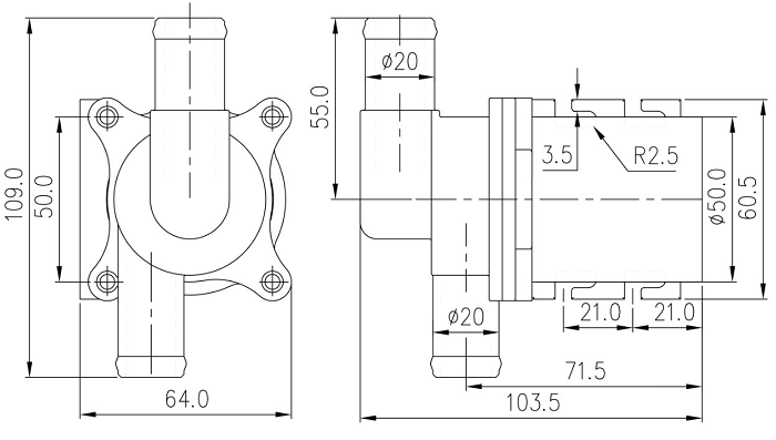 | 2 | 水泵出水口外徑 | 20mm |